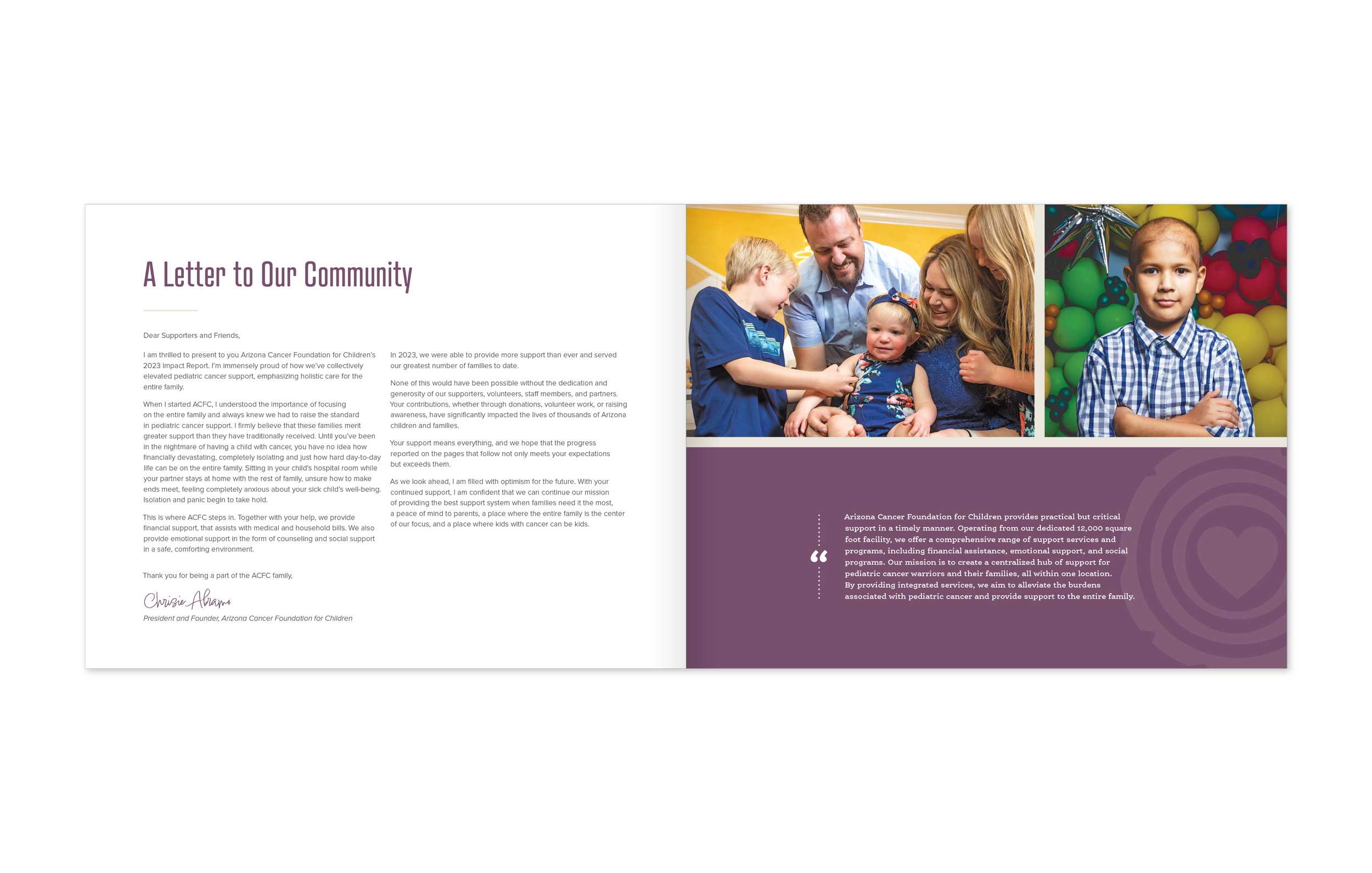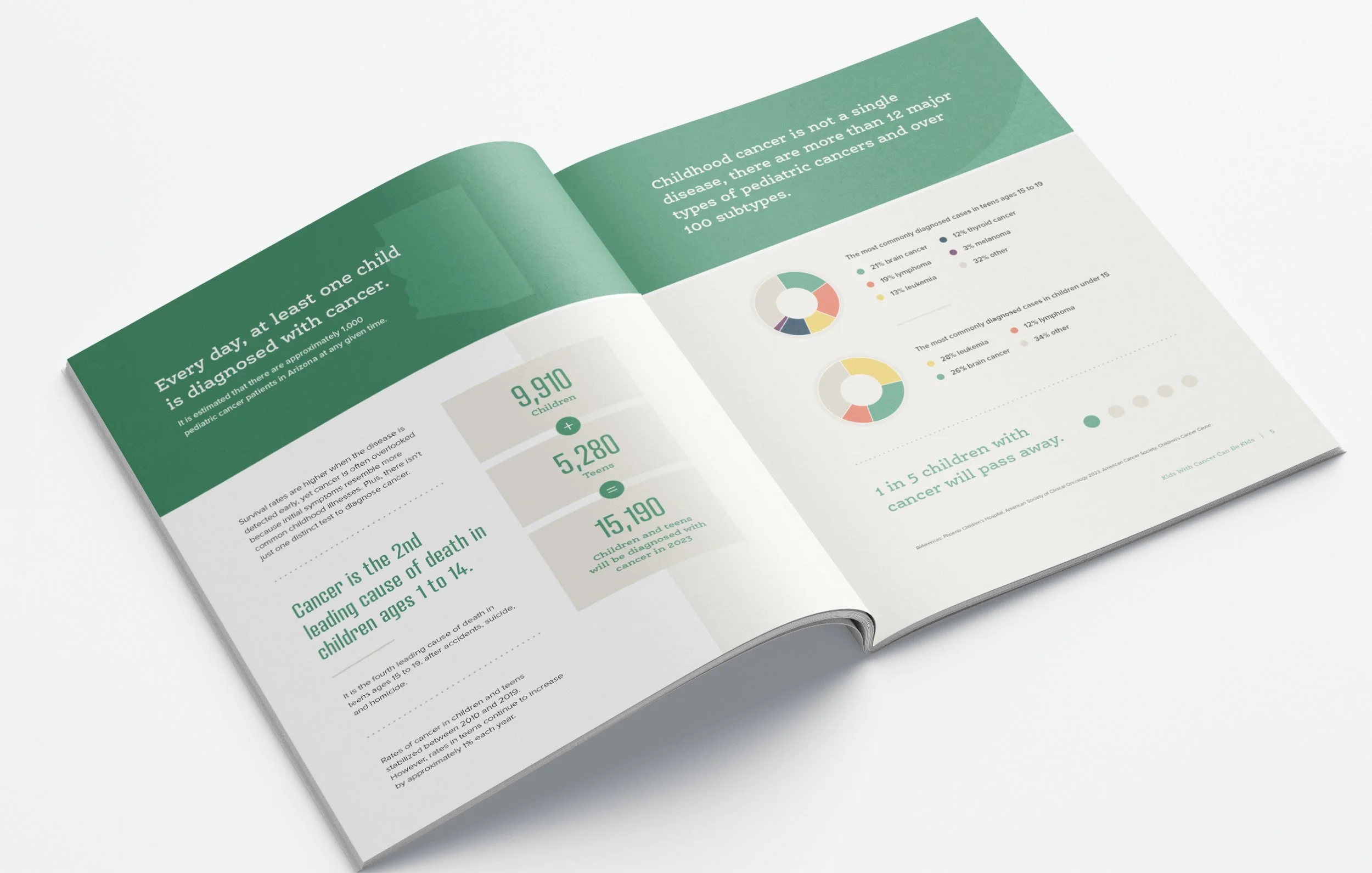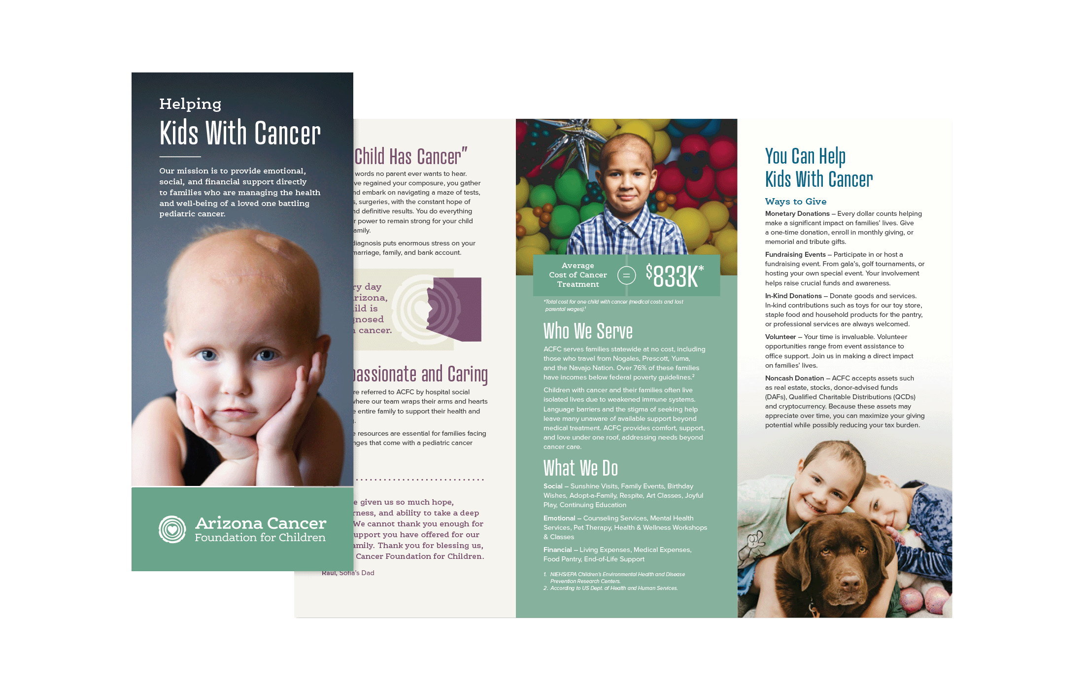 I’ve been fortunate to collaborate with this incredible organization on a wide range of materials, including annual reports, brochures, a capital campaign, and their website. For their Kids with Cancer Can Be Kids campaign, I designed a letterhead, proposal document, pocket folder, note cards, newsletters, and various other supporting collateral—while also managing production with the printer. Additionally, I designed a new website that highlights their key programs and provides important resources for families.