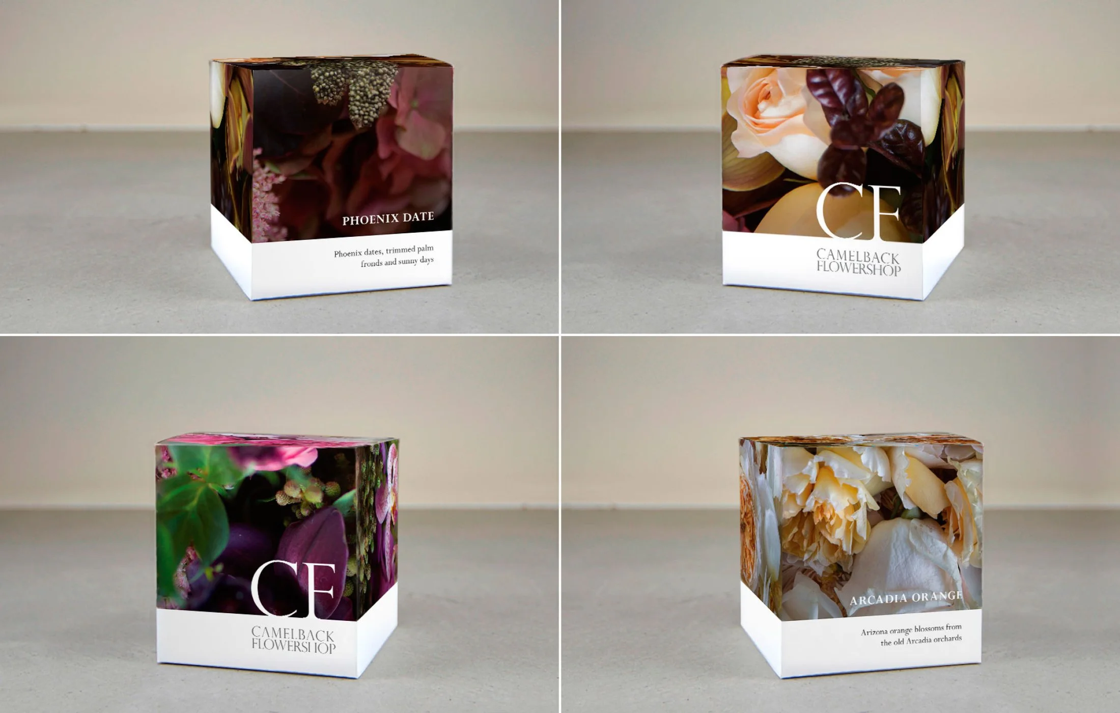 PROJECT I designed the candle packaging and shopping bags for Camelback Flowershop, as well as produced final art files and oversaw production. I also designed a proposed van wrap.