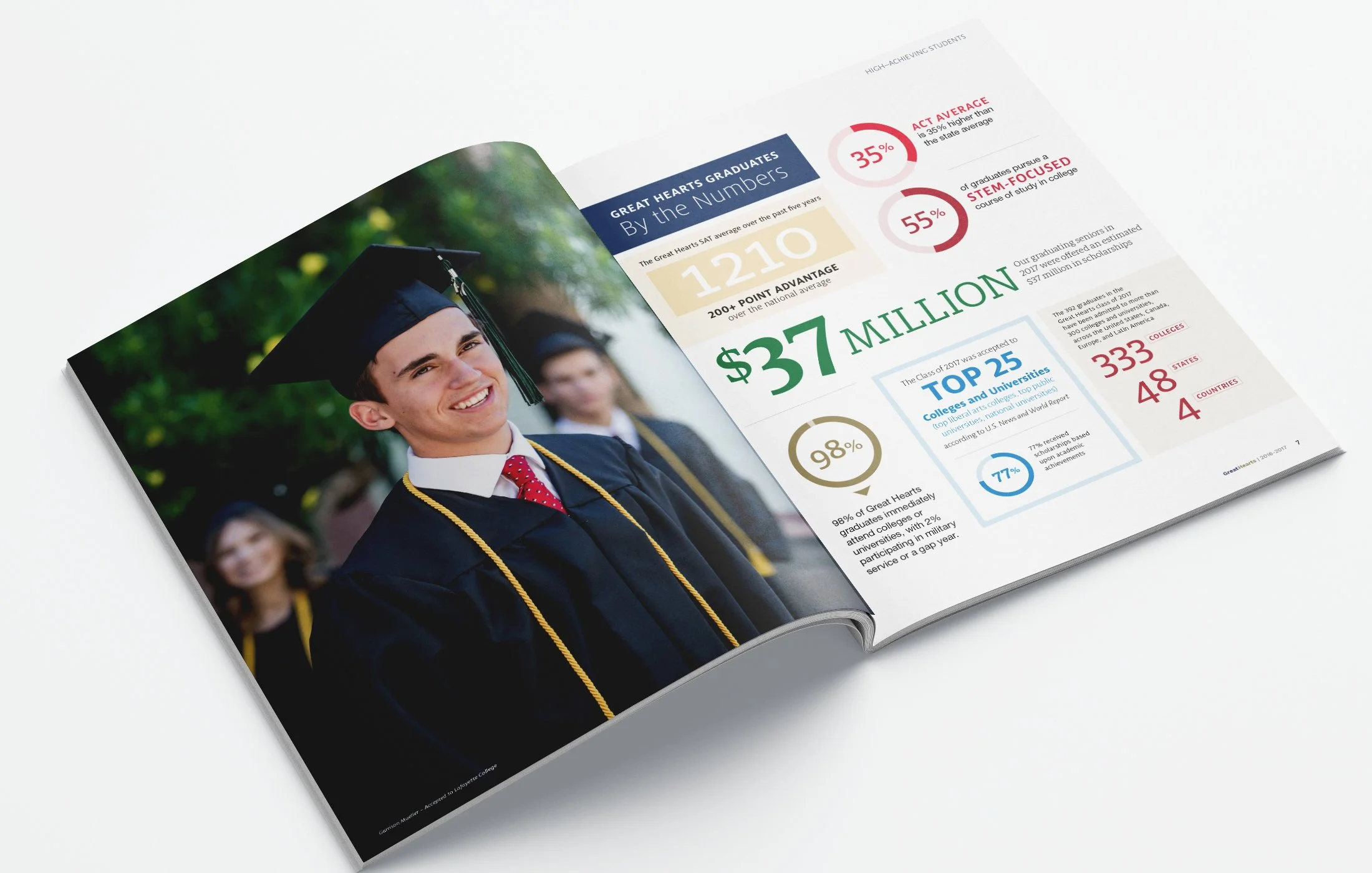 PROJECT I designed the layout and infographics for Great Heart’s 2016-2017 Annual Report and worked closely with printer to oversee production.