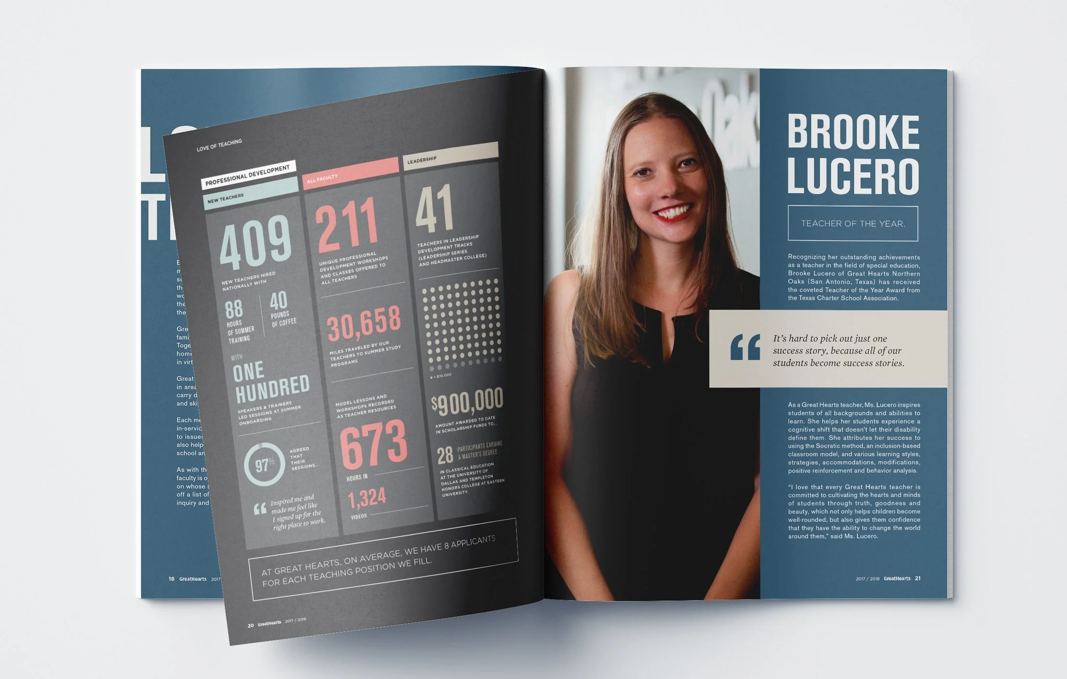 PROJECT I designed the layout and infographics for Great Heart’s 2017-2018 Annual Report and worked closely with printer to oversee production.